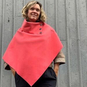 Add some vivid flair and colour to your wardrobe with this beautifully soft wool poncho coat. Three button detailing at neckline.