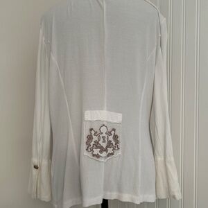 Gorgeous jacket for resort and summer wear. Silk and cotton size large fits smaller though suggest medium. Ptp 19”