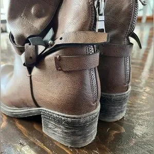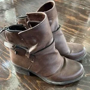 Handmade in Umbria, Italy, purchased from a shoesmith in the town of Perugia. One of a kind. 100% authentic leather, thick rubber sole. Size 36 European. The back zipper is an accessory, the side zipper is functional. No wear at all on top. Only wear is one the bottom- hardly worn.