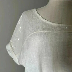 Italian linen Lungo L’arno boho glam shabby chic white dress with sequin details