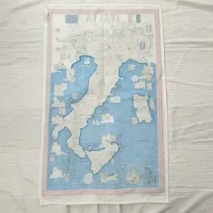 Explore Italy with this vibrant tea towel featuring a detailed map design. Perfect for adding a touch of color to your bathroom decor. In like new condition.