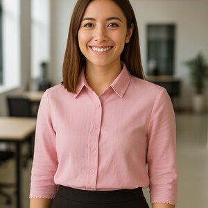 It's a New Vision Women’s 100% Linen Pink Button-Up Blouse — Size S