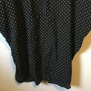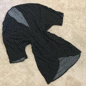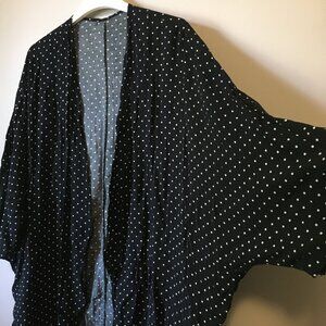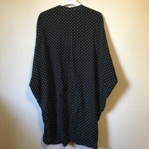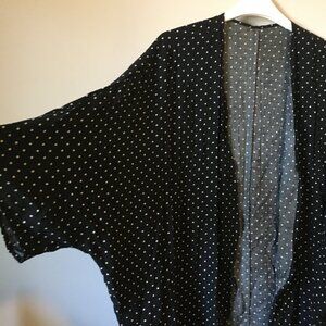 Very good preowned condition, black open, cocoon cover, made of lightweight viscose by Ardene, featuring itty bitty white polka dots. Pretty cute, and surprisingly nice quality for Ardene. In dire need of some ironing, but once that's out of the way it's ready to shine. I will update pictures once it's ironed. A cute piece, but perhaps prone to wrinkles. Bundle for less.