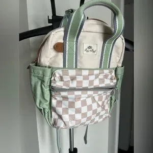 Itzy Ritzy Cream and Green Checkered Backpack