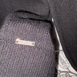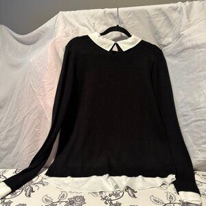 Black Knit Sweater with Peter Pan collar embellished with gold sequin and bead floral appliques.