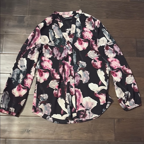 Ivanka Trump Black and Pink Floral Button Down Shirt, size small