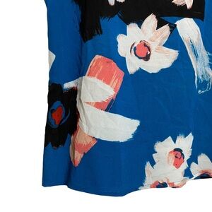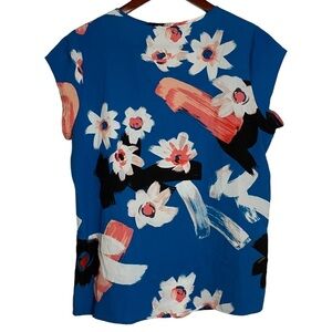 Ivanka Trump Floral Print Blue White Pink Black Blouse Split Crew Neck Small