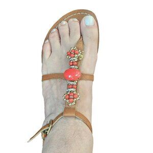 Ivanka Trump Genuine Leather Coral Sparkly Embellished Sandals 9M