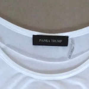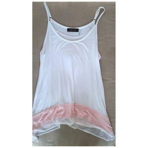 Ivanka Trump Spaghetti Strap Asymmetric Top, 92% Rayon/8% Spandex, white/pink, size Large.