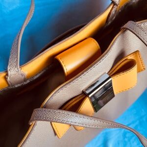 Ivanka Trump Top Handle Tote Tan Yellow Gold Hardware Large Handbags Yellow Bow