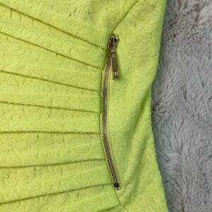 Ivanka Trump Size 10 Ruched Sleeveless Yellow Textured Side Zipper Pleated Accent