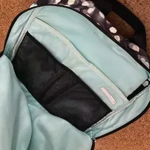 Iviva backpack, with laptop compartment (gently used). Padded laptop pocket with side zip access.