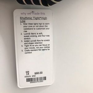 New with tags. Size 14. Fits 6-8 Lululemon. Lines are rainbow. Sister brand of lululemon. Same great fabric and fit ✨