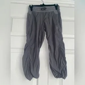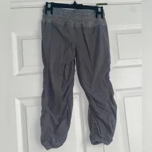 Grey studio ivivva capris with a drawstring, and pockets.