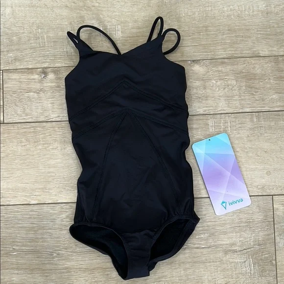 This cute Ivivva leotard is designed with upper and mid back ventilation to help keep your dancer dry and focussed lux extreme fabric is sweat waking and four-way stretch for extra coverage - strappy open back gives your little one more freedom to move, added Lyra, fibre for shape retention.