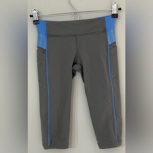 These are previously owned & still in very good condition. Ivivva: girls crop leggings, size 8, have minor wear, washing wear, & fading throughout. There are several areas with mild to moderate pilling, particularly on the waistband. These crops feature a drawstring on interior of the waist band (last photo) as well as a never before used “oops I’m lost” name tag. Made of nylon, polyester & elastane.