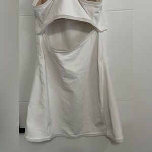 Previously owned, still in good condition overall Slight visible wear & fading in areas throughout. Features a built in bra liner (removable bra pads not included with this dress) & an interior name tag space that is still empty/never used. The panels on the skirt appear to have a pleated design as well. Photos#10-14 are of the dress posed inside out. Great active dress! View photos #4-5 for material tags & details.