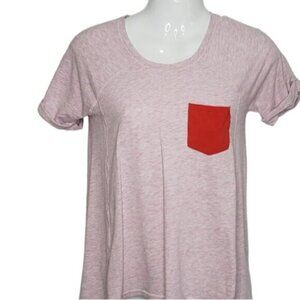 Light pink purple short sleeve tee with patch pocket on left chest Hi Low hem rounded crew neckline