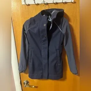 Denim blue colour with few other colours Sz 8 Great for fall or spring Water resistant Excellent condition