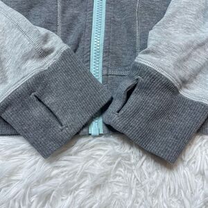 Ivivva Lululemon Kids Teens Size 12 Hoodie Grey Teal Zip Up Sweatshirt Sweater
