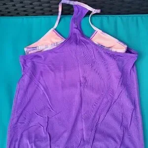 Stylish purple racerback tank top. Perfect for workouts or casual wear.