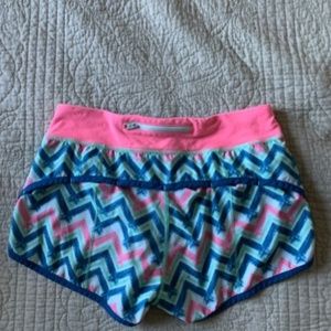 Pink, teal and seafoam green zigzag print shorts from Ivivva. Worn only once. Perfect condition. Girls size 14.