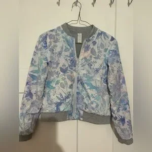 The reversible bomber can take her from school to practice. Swift fabric on the outside is lightweight. Stretch French Terry fabric is soft, four-way stretch, and naturally breathable. Zippered pockets keep her essentials safe. Slim fit lets her move with ease.