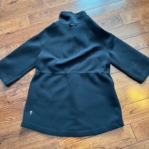 Sz 14 funnel pulling over, unique arm detailing cut out. Cinch cord at waist, pockets.