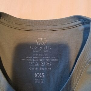 Ivory Ella women's size XXS or 00 Easter Elephant shirt, light blue/gray shade, applique perfect