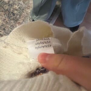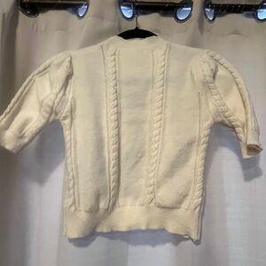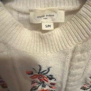 Incredibly cute white sweater adorned with colorful floral embroidery. Made with 30% real wool this adorable tee is for cooler weather.