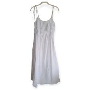 OAK + Fort's ivory midi dress blends timeless elegance with contemporary details, featuring a 100% cotton construction.