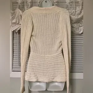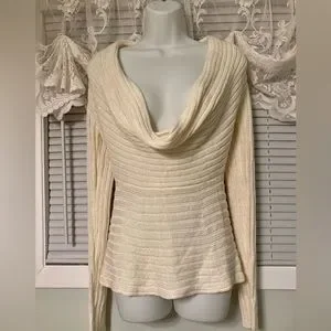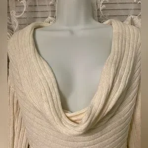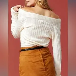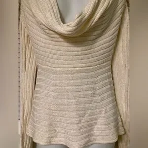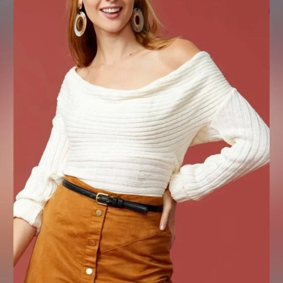 Gorgeous off shoulder sweater in a lovely shade of ivory. Never worn and in perfect condition. It can be worn either as a cowl neck or an off the shoulder sweater. It has some stretch to it as well!