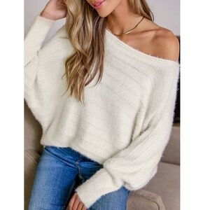 Ivory Off-Shoulder Puff Sleeve Sweater - L