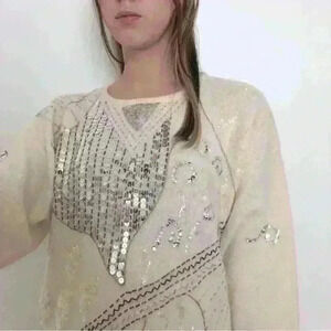 Ivory Sweater Tunic with Sequins & Beads, Wool Angora