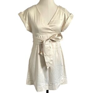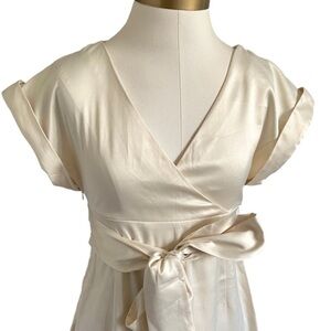 Ivory White Satin Cross Front Tie Sequin Waistband Wedding Prom Dress - 6/S
