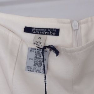 New with tags, these wide leg pants have a fabulous drape. Crisp cotton and viscose fabric is heavy enough that it's not see-through. Hidden centre back zip and darts front and back to add shape at the waist.