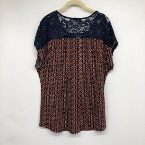 Ivy Ridge Two Tone Lace-Top Keyhole Neckline Short Sleeve Blouse size ~L
