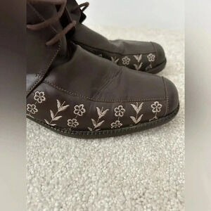Ixos Italian Brown Leather Lace Up Minimalist Academia Ankle Boot embroidered