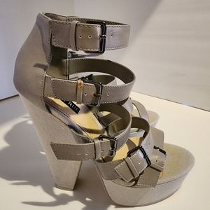 Izabella Rue Grey Heels with 4 Silver Buckles