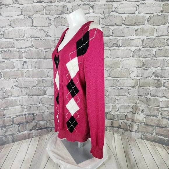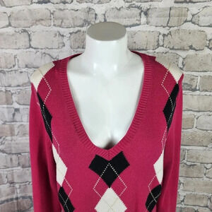 Izod Golf Argyle Low VNeck Sweater Cotton Pullover Hot Pink Size XL