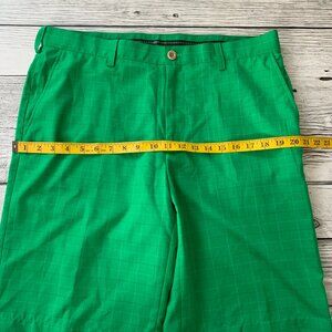 The Izod Golf Shorts for men in size 34 are a stylish and versatile option for a variety of occasions. These green plaid shorts feature a flat front design, mid-rise fit, and a 10-inch inseam, making them perfect for casual outings or outdoor activities. Made from a lightweight and easy-care fabric blend of polyester and rayon, these chino-style shorts also include accents like buttons, pockets, and a logo, adding a touch of preppy sophistication to your wardrobe. Ideal for golf, travel, or everyday wear, these shorts are a must-have for any man looking to stay comfortable and stylish.