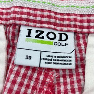 Izod Golf Shorts Men 30 Red White Checkered Chino Short Pants Casual Preppy