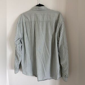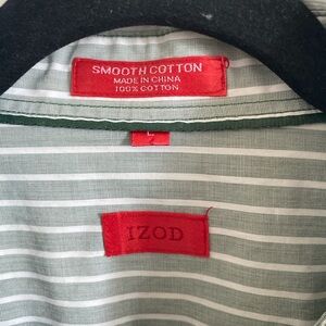 Izod Men’s 100% Cotton Long Sleeves Olive/White Striped Dress Shirt Size L