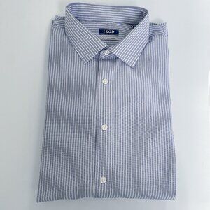 Izod - Men's White & Blue Pinstripe Button Dress Shirt