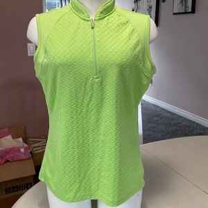 Izod Neon Green Athletic Golf Tennis Sleeveless Mock neck Top Size Large