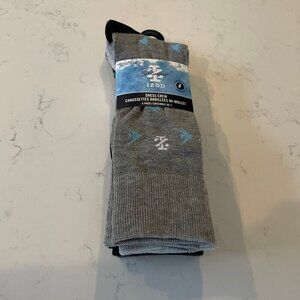 Izod Saltwater 4 Pairs Lightweight Patterned Crew Dress Socks in Grey Black + Lt. Blue
