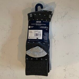 Izod Saltwater 4 Pairs Lightweight Pattern Crew Dress Socks Gry Blk Blue OS NWT