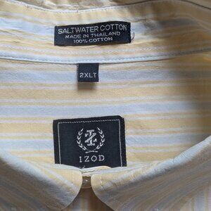 Izod Saltwater Cotton Classic 2XLT Button‑Down Short Sleeve Stripe Shirt