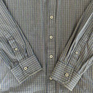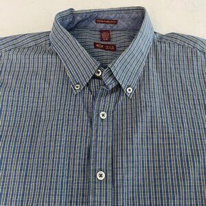 Izod Slim Fit Casual Button Down Lg Slv Check Cotton Shirt Navy + Green Sz L