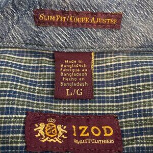 Izod Slim Fit Casual Button Down Lg Slv Check Cotton Shirt Navy + Green Sz L